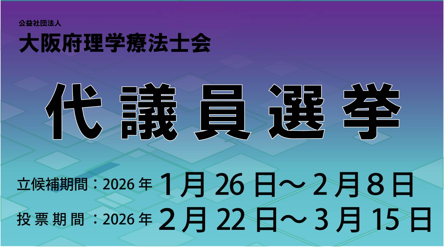 TOPICS2026/1/19【重要】大阪府理学療法士会 代議員選挙告示 学会・研修会・講習会情報 ニュース・お知らせ 各種お問合せ窓口 学会学術大会・研修集会 生涯学習センター主催研修会 前期・後期研修、新人症例発表会 登録理学療法士 認定・専門理学療法士 臨床実習指導者講習会 開催日:2026年01月17日 認定・専門理学療法士東支部枚方市理学療法士会 一般社団法人枚方市理学療法士会主催2025年度介護予防認定PT臨床認定カリキュラム教育機関研修 開催日:2026年01月21日 カリキュラムコード: 区分: 9|117 リンパ浮腫 生涯学習センター主催研修会登録理学療法士認定・専門理学療法士 リンパ浮腫に対するリハビリテーション 開催日:2026年01月22日 生涯学習センター主催研修会前期・後期研修、新人症例発表会 【センター主催 第10回後期研修(C3)】循環器疾患患者の病態理解に必要な心エコー検査の見方 VIEW MORE 2026年01月19日お知らせ【重要】大阪府理学療法士会 代議員選挙告示2026年01月16日お知らせ第6回 中支部新人症例発表会 抄録集完成のお知らせ2026年01月16日お知らせ第38回大阪府理学療法学術大会開催のお知らせ(第2報)2026年01月14日お知らせ2025年度 後期研修 第5回「主催」症例検討会 聴講者募集のおしらせ2026年01月13日「主催」「承認」症例検討会【重要】後期研修 士会『承認』症例検討会 3月開催のお知らせ VIEW MORE Instagram Facebook 大阪府理学療法士会生涯学習センター X (旧Twitter) Tweets by opta_ccpd