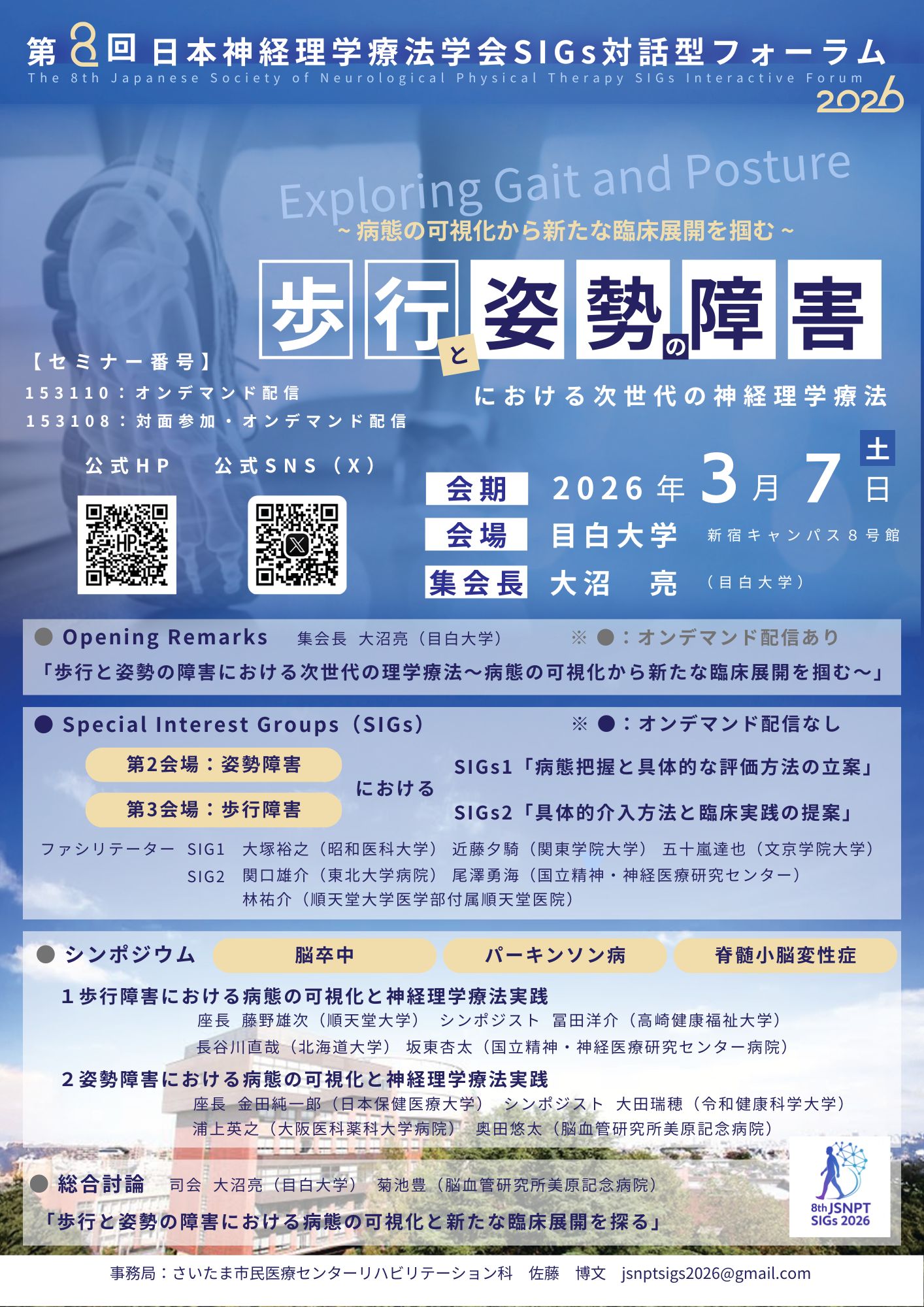 | お問い合わせ先 | 事務局:さいたま市民医療センターリハビリテーション科 佐藤 博文 jsnptsigs2026@gmail.com |