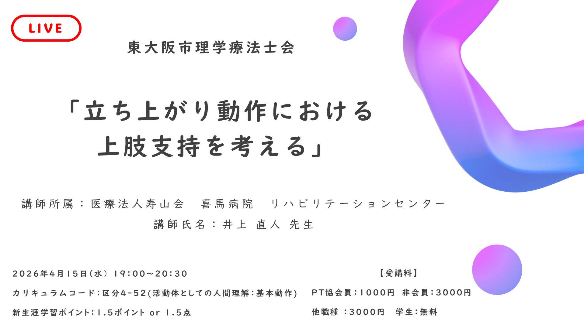 | お問い合わせ先 | 東大阪市理学療法士会 研修事業部 |