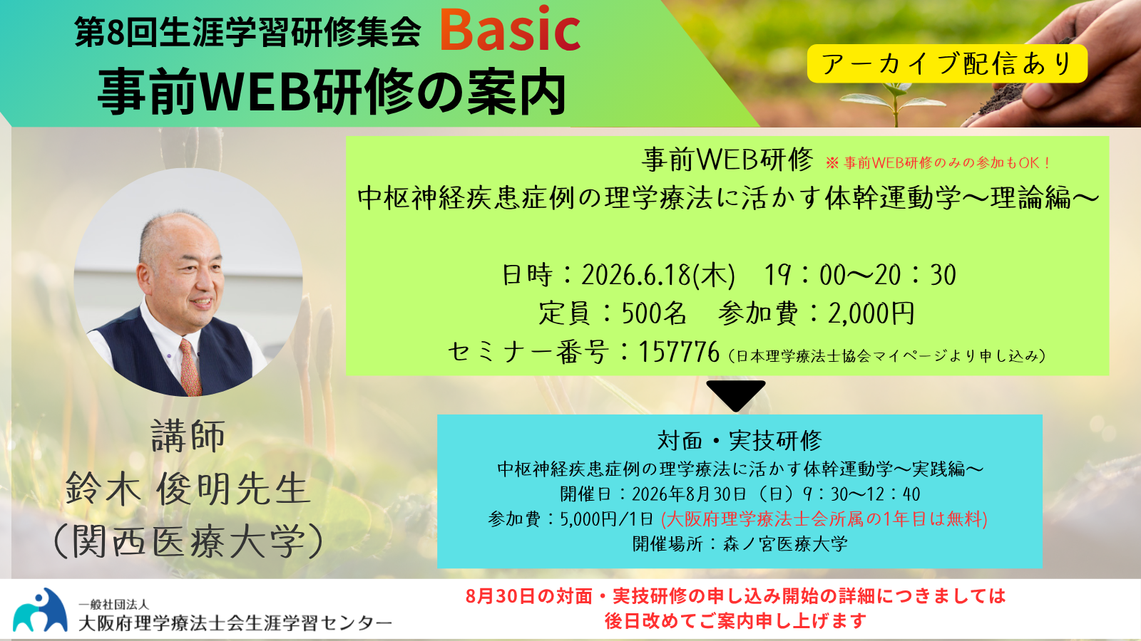 ※当日参加ができなくてもアーカイブ動画の視聴は可能です。ただし生涯学習ポイントの申請はできません。